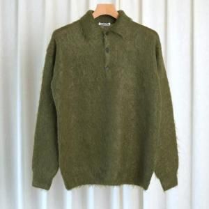 【25A/W】【AURALEE オーラリー】 BRUSHED SUPER KID MOHAIR KNIT POLO / OLIVE